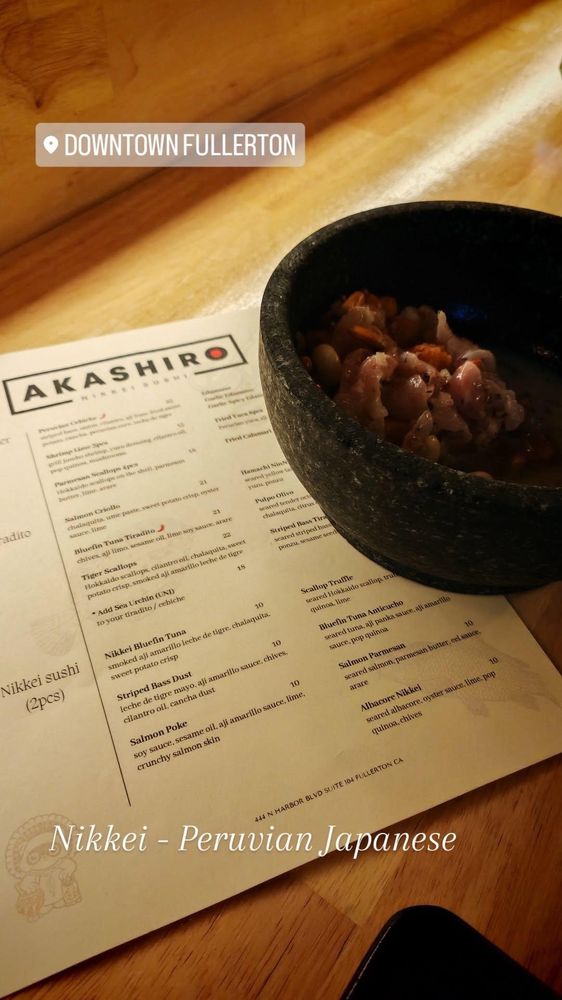 Welcome to Akashiro Nikkei Sushi, a delightful fusion of Peruvian and Japanese flavors located in the heart of Fullerton. This intimate restaurant offers a unique dining experience where every dish is crafted with love and passion. The menu boasts an impressive array of hand rolls and specialty rolls, including favorites like the Parmesan Maki and the Nikkei Maki, each delivering a burst of flavors that will tantalize your taste buds.